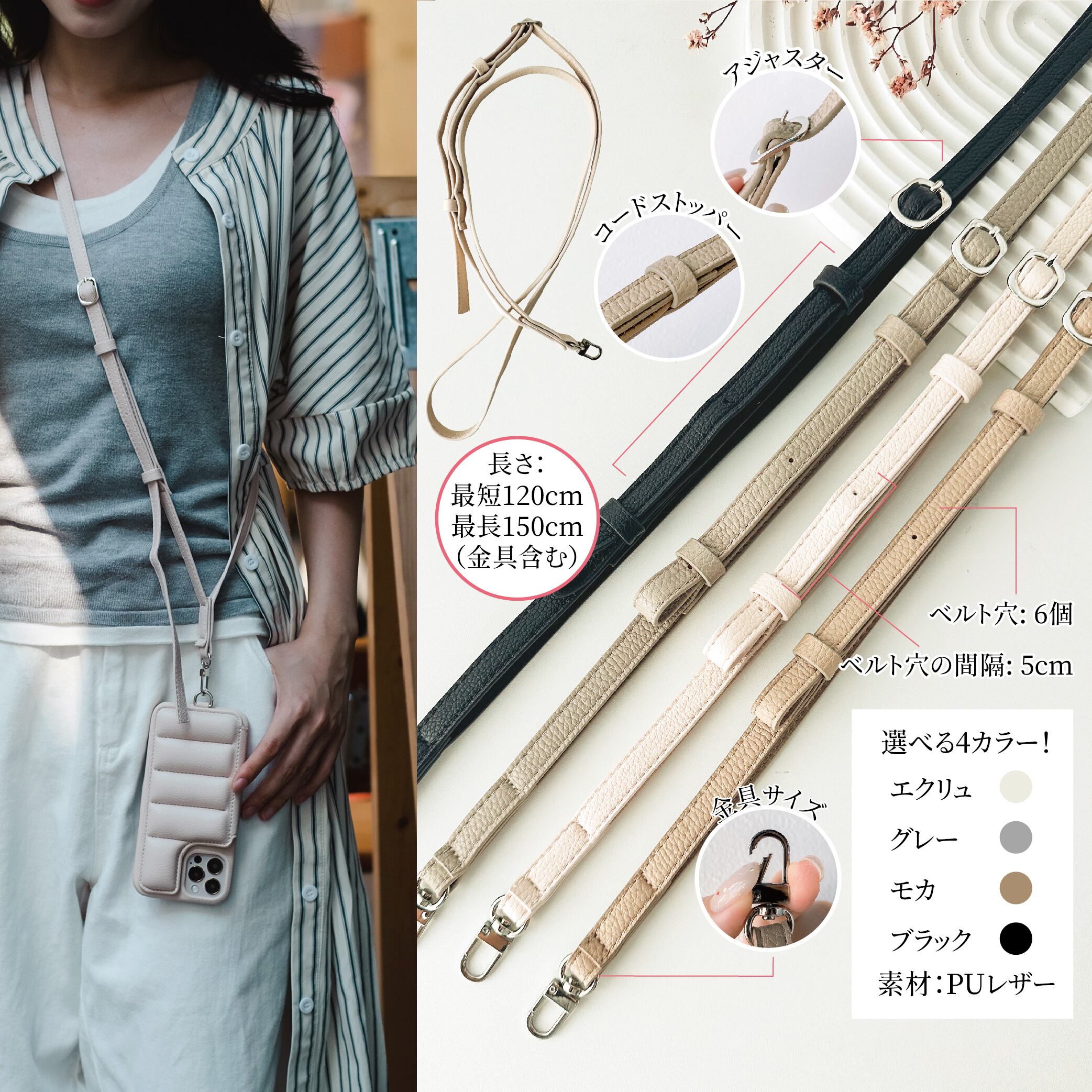 ・カラーバリエーション:ブラック、アイボリー、ピンク、グリーン