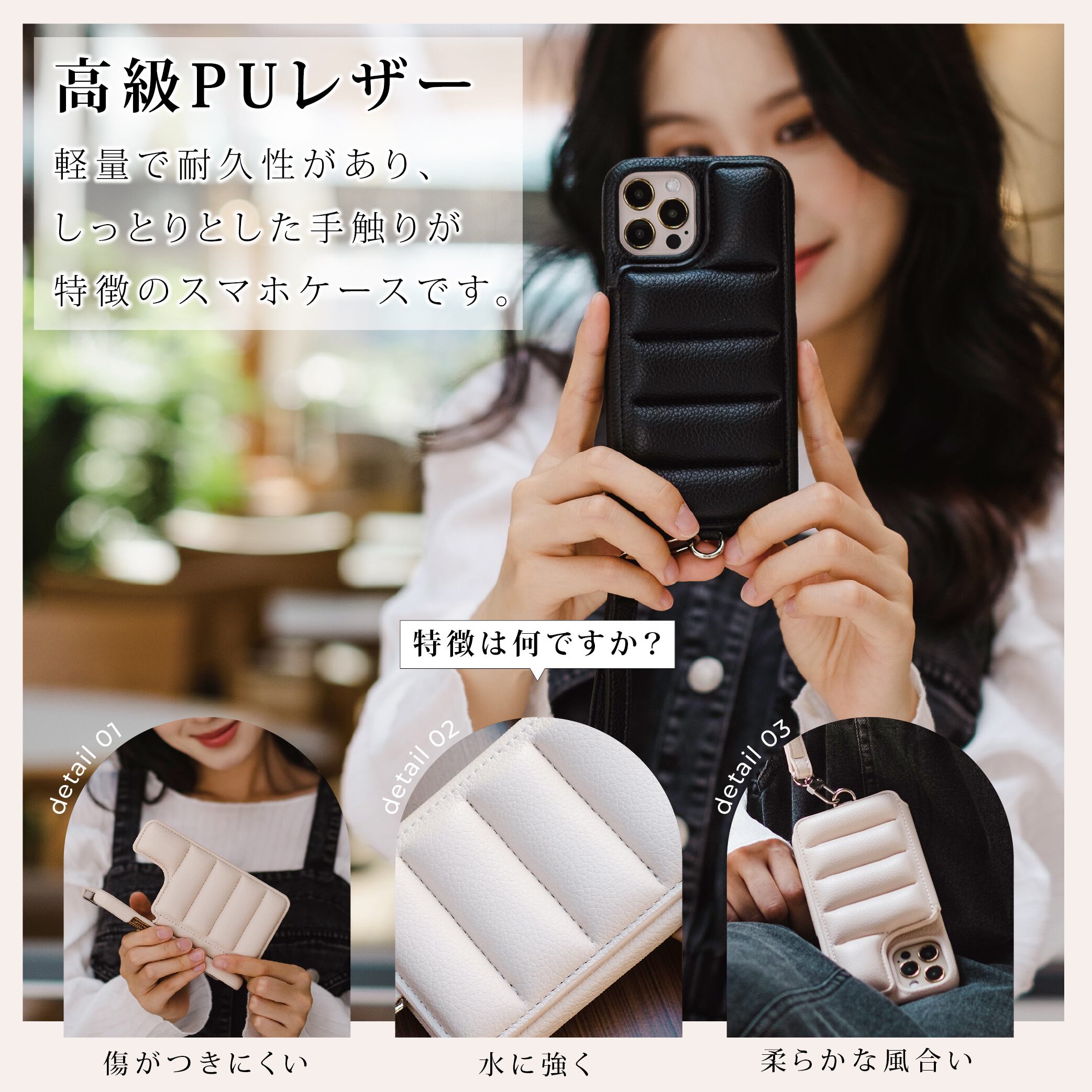 ・素材:高耐久性ポリカーボネートと上質な合成皮革