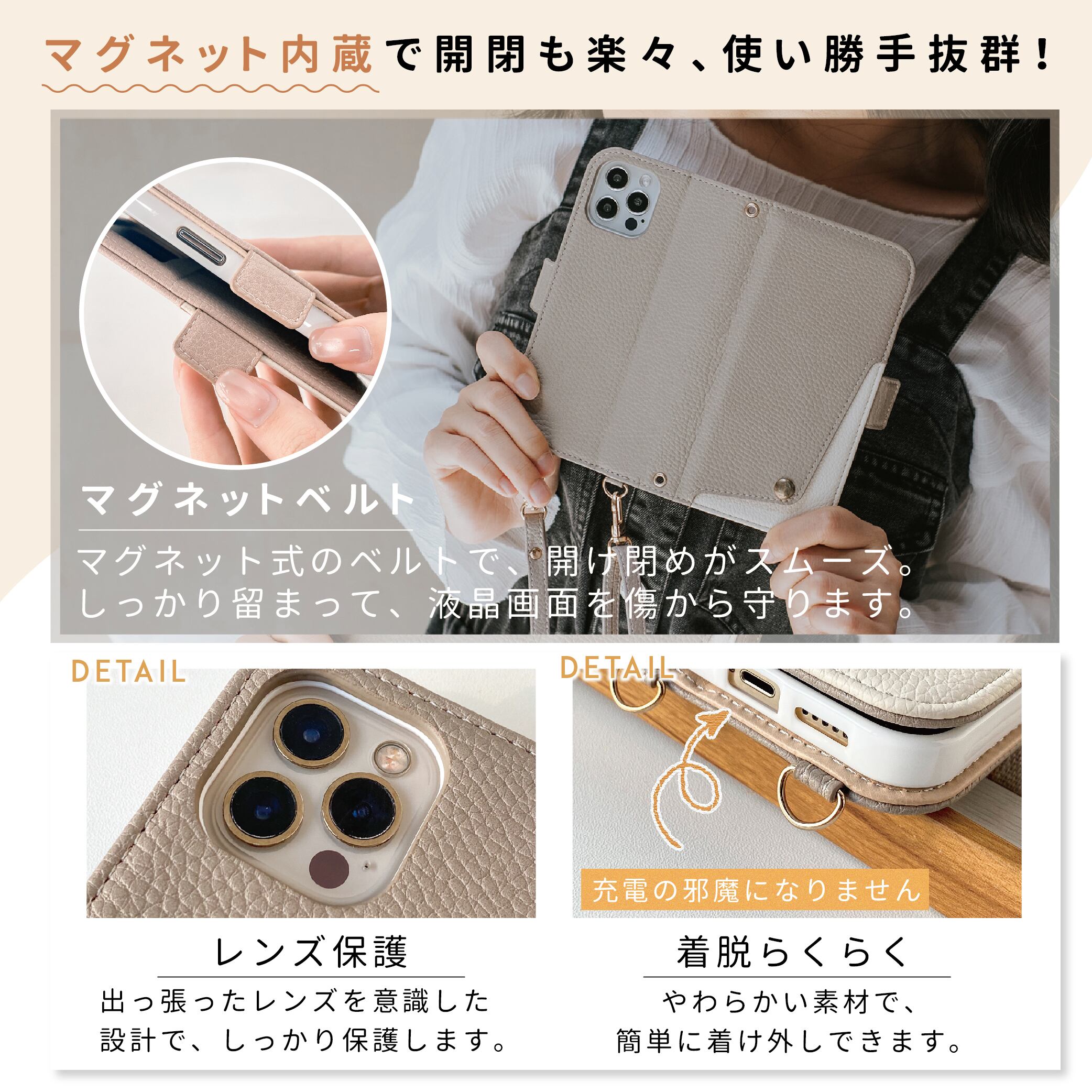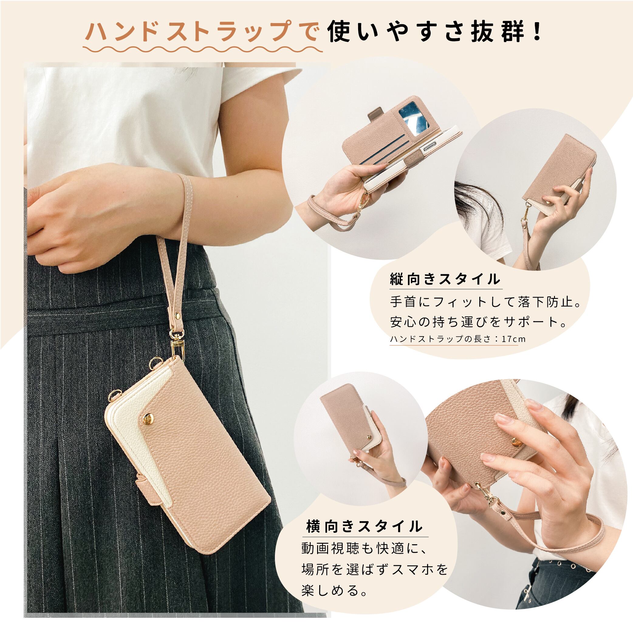 この手帳型スマホケースは、iPhone17、17Pro、17airに加え、iPhone16、15、14、13、12、さらにはGoogle Pixel10、9a、8a、7aにも対応しています。ショルダータイプのデザインにより、手軽に持ち運びが可能で、日常使いのスタイリッシュなアイテムとなります。さらに、カード収納機能やミラー付きの設計は、実用性を追求したスマートな仕様です。